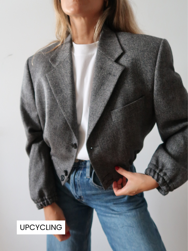 Una prenda tan especial que no habrá dos iguales. Cada bomber nace de una americana de hombre vintage, transformada a mano en nuestro taller de Sevilla.