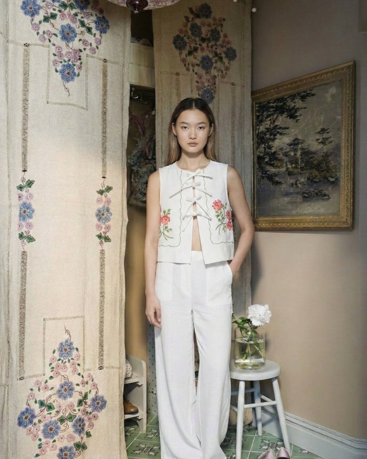 Blusa confeccionada a partir de manteles antiguos, recuperados y transformados en piezas únicas llenas de historia. Cada blusa está hecha a mano, una a una, en nuestro taller, respetando los bordados, encajes y detalles originales del tejido para preservar su valor y su esencia.